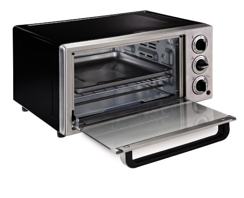 With its brushed stainless-steel front and black housing, this convection countertop oven offers a lot more than just refined good looks. The oven comes equipped with convection technology, which distributes heat evenly for thorough cooking and excellent results. Put the appliance to use as a second oven when needing extra cooking space during the holidays--or as an energy-efficient alternative to turning on the full-size oven. The unit's generously sized interior offers enough space to accommod