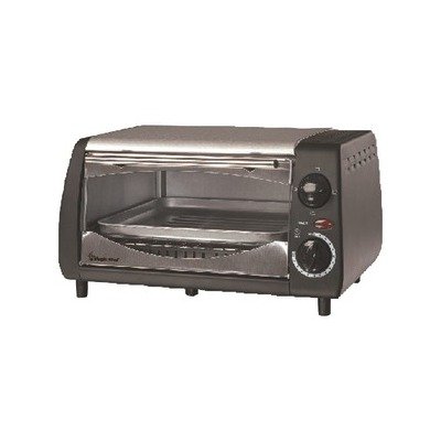 4-Slice Capacity; 600W; 30-Min Timer with Bell; 3-Stage Heating Selector; Power Indicator Light; Includes Chrome Rack, Crumb Tray and Bake Pan; Stainless Steel Housing.