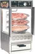 (Photo shows Pretzel display unit #5552PR) Moisture within the cabinet prolongs product shelf life Improved electronics Built-in adjustable timer Holds up to 16'' diameter pizzas Accurate capped tube thermometer senses display cabinet temp. Use tap water to prolong freshness during display 120VAC, 1880 Watts, 12 Amps 18''W x 18''D x 28''H Also available as pretzel display cabinet model 5552PR