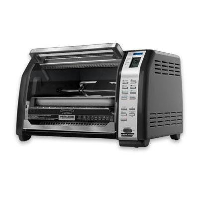 Black & Decker Rotisserie Convection Toaster Oven with Black finish... Create healthy mouthwatering family meals with the built-in rotisserie that allows you to roast your favorite meats and poultry. Use convection baking for faster and even cooking as hot air circulates your food ? and the one-touch functions like Bagel Pizza Frozen Snacks Potatoes and Cookies for precise cooking. With the extra-deep curved interior it is easy to make delicious casseroles and pizzas. When you are done cooking c