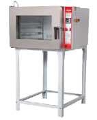 Thermal insulation Glass window door Fast heating with convection fan for even heat circulation Capacity 4 full size bun trays 18'' x 26'' Steam system in the form of a fan, with adjustable timing, consisting of immediate evaporation Rubber trim seals glass, preventing heat and steam loss Cooking chamber has rounded corners with solid seams Overall: 37'' x 51'' x 60'' Stand included 220V/3Ph, 20.5 amps. No plug included