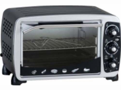 - Extra Large Capacity - 18 Liter ; 6 Slice Toaster 1400 Watts Oven, Black Housing, Silver Door Frame, Silver Knob w/ Bake Rack & Bake Tray
